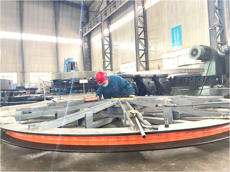公司φ3.25×4m返修天輪現(xiàn)已進(jìn)入襯塊筒瓦油管裝配,后續(xù)部件裝配完畢后進(jìn)入熱裝。