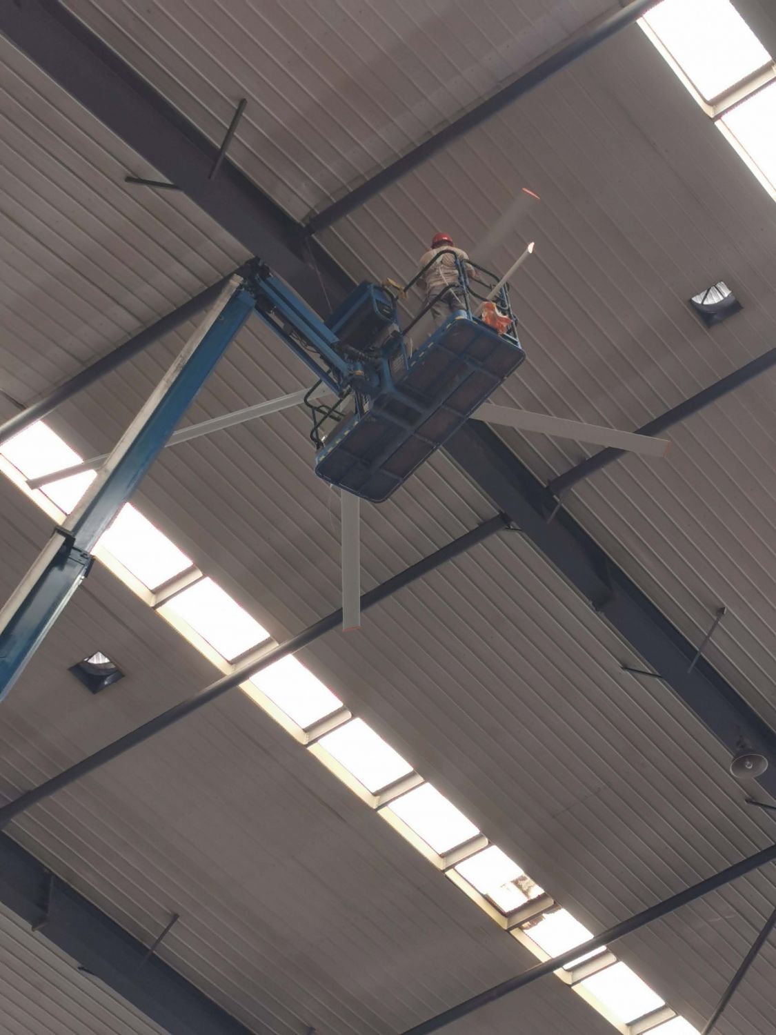 同傳統(tǒng)的冷暖空調(diào)和小型的高速風(fēng)扇相比,大風(fēng)扇的優(yōu)勢是很大限度地節(jié)約了使用成本,有效減少了使用面積,既提高產(chǎn)品使用安全性,均勻柔和的自然風(fēng)效果也有利于車間工人的身體健康,無形當(dāng)中提高了工作效率,直接降低了生產(chǎn)成本。同時(shí),舒適、健康的工作環(huán)境也有利于提升員工向心力、凝聚力,穩(wěn)定的員工隊(duì)伍有效降低了由于員工跳槽導(dǎo)致的公司招聘、培訓(xùn)等人力成本。大風(fēng)扇堪稱高大空間通風(fēng)降溫的完美解決方案。